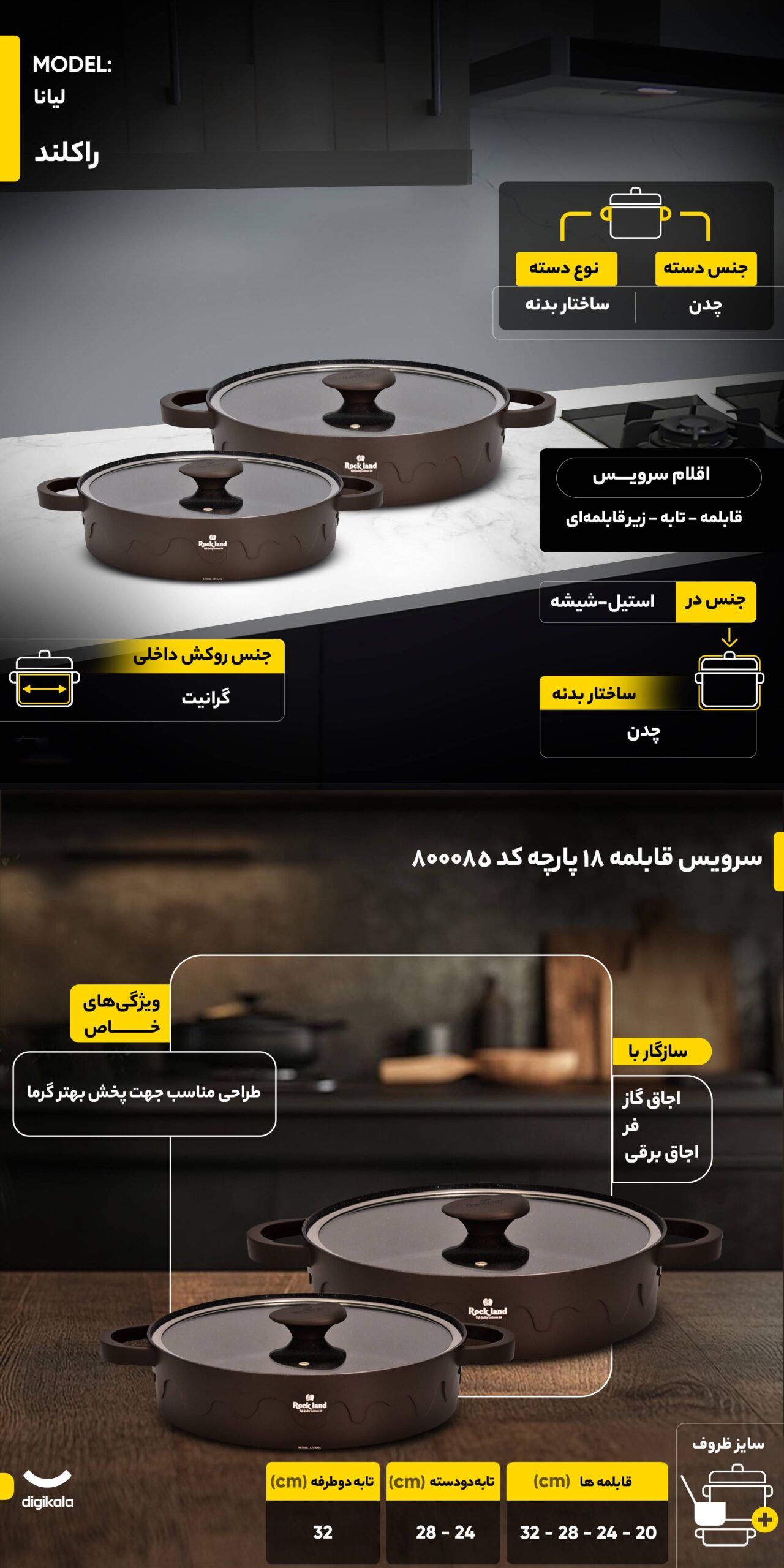 سرویس قابلمه 18 پارچه لیانا راکلند کد800085