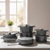 لایه داخلی به مواد گرانیتی نچسب وارداتی مجهز شده است که دارای تاییده سلامت هستند و در برابر خط و خش مقاوم (البته برای طول عمر بیشتر این محصول توصیه میشود از قاشق چوبی استفاده شود) ، فرم هندسی این ظروف پخت و پز از محصولات ایکیا الگو برداری کرده است تا بتواند سبکی مدرن را برای شما خلق کند .